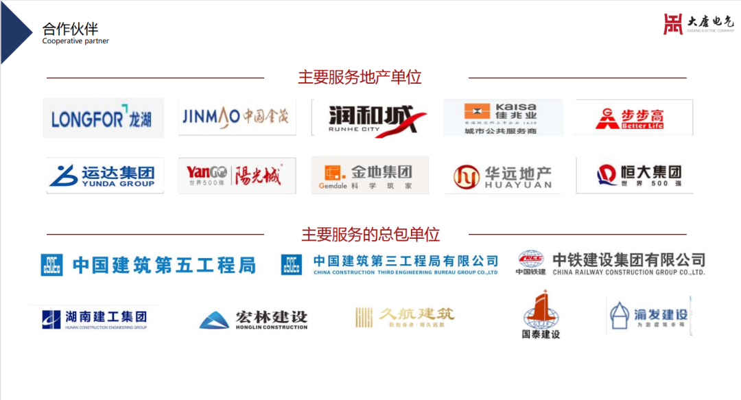 在公司“誠信、務實、精進、共贏”的企業(yè)核心價值觀的引導下,我們已與恒大地產、金茂地產、龍湖地產、旭輝地產、佳兆業(yè)地產、榮盛地產、保利地產、華遠地產、萬達廣場、步步高商業(yè)等開展了長期的深度合作,并承接了國家、省政府等重點項目,如機場、軌道交通、醫(yī)院、大中院校等。優(yōu)質的產品保障、完善的服務體系100%的消防驗收通過率使湖南大唐電氣贏得了全國客戶的贊譽。